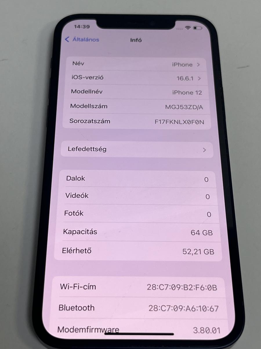 iPhone 12 64GB Black Mobiltelefon, HASZNÁLT