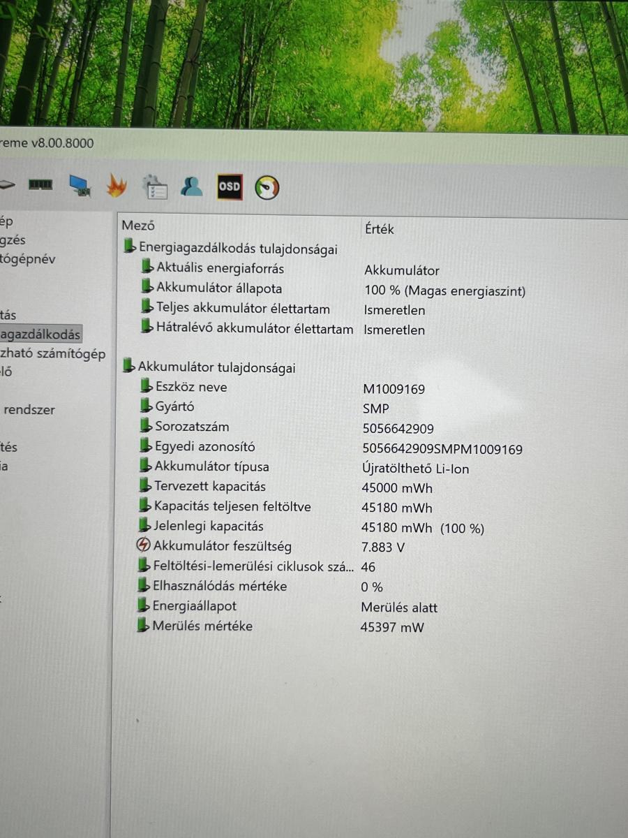 | Akkumulátor állapota | 100% állapot |