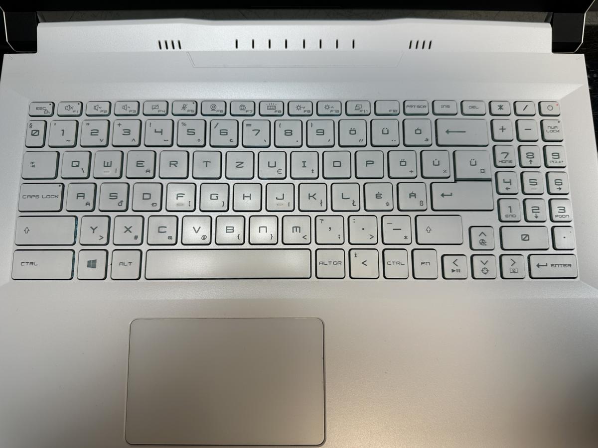 A laptop magyar nyelvű (HU), kék háttérvilágítással rendelkező billentyűzettel érkezik. A 1,7 mm-es billentyűút és a dedikált numerikus pad kényelmes gépelést és precíz játékvezérlést tesz lehetővé.