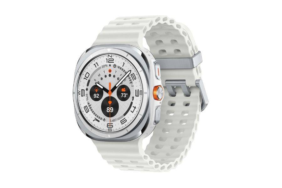 A Samsung Galaxy Watch Ultra (2025) a gyártó csúcskategóriás okosórája, amelyet sportolók, outdoor felhasználók és üzleti felhasználók számára terveztek. A titánfehér ház egyszerre könnyű és rendkívül strapabíró, míg a 47 mm-es méret jól olvasható kijelzőt és masszív megjelenést biztosít.