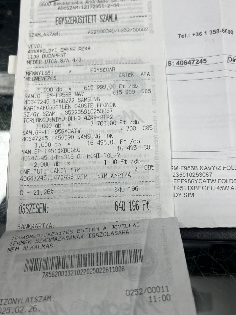 A Samsung Galaxy Z Fold6 5G (256 GB) egy prémium hajlítható okostelefon, amely ötvözi a telefon és a tablet előnyeit: kompakt méretben hordozhatóság, de kinyitva 7,6″-os Dynamic AMOLED 2X kijelzővel, 120 Hz frissítéssel és 5G-vel videózás, munkavégzés és multitasking élményét nyújtja. Snapdragon 8 Gen 3 processzorral, 12 GB RAM-mal és erős kamerarendszerrel készült — ideális aktív, mobil életmódhoz.